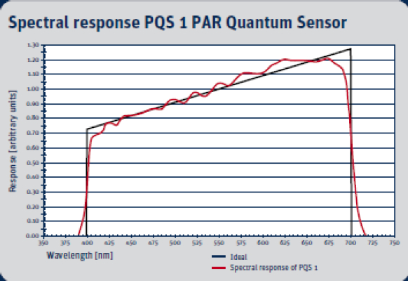 定義的,在這個區(qū)域內(nèi)的光子被等量的吸收?!八{(lán)”光子相對較短的波長(高頻率)比‘紅色’長波長有更多的能量。光合有效的量通常表示為光合光量子通量密度(PPFD):摩爾/m2·s。