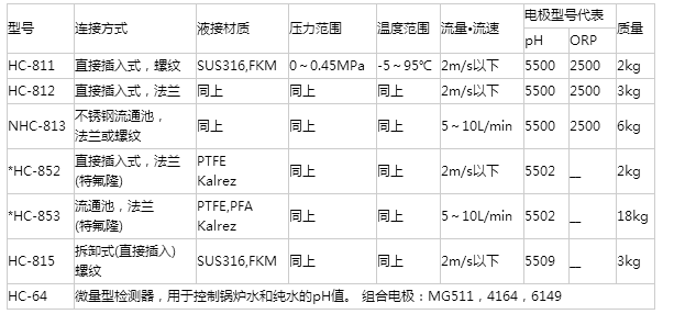 用于排水及上下水處理、排煙脫硫?鍋爐設(shè)備等一般的在線過(guò)程控制,應(yīng)用廣泛。通過(guò)連接方式和測(cè)定條件選擇合適型號(hào)